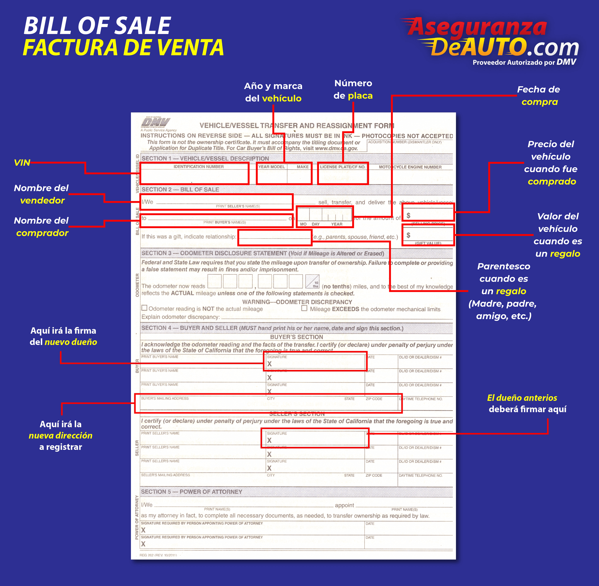 ¿Cómo llenar el Bill of Sale (Factura de Venta)?