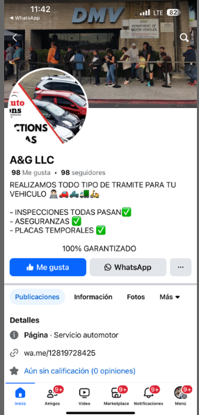También promueven estos servicios desde una página de Facebook que no está relacionada con nosotros, bajo el nombre “A&G LLC”.